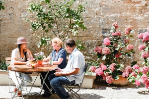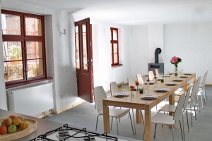 Der Innenhof kann außerhalb der Öffnungszeiten des Weinrestaurants von den Gästen der Ferienremise genutzt werden. Die Öffnungszeiten sind Di bis Sa 17:00 bis 22:00 Uhr. In dieser Zeit, sowie in den Zeiten für Vor- und Nachbereitung von jeweils ca. einer Stunde ist der Hof durch das Weinrestaurant bewirtschaftet.